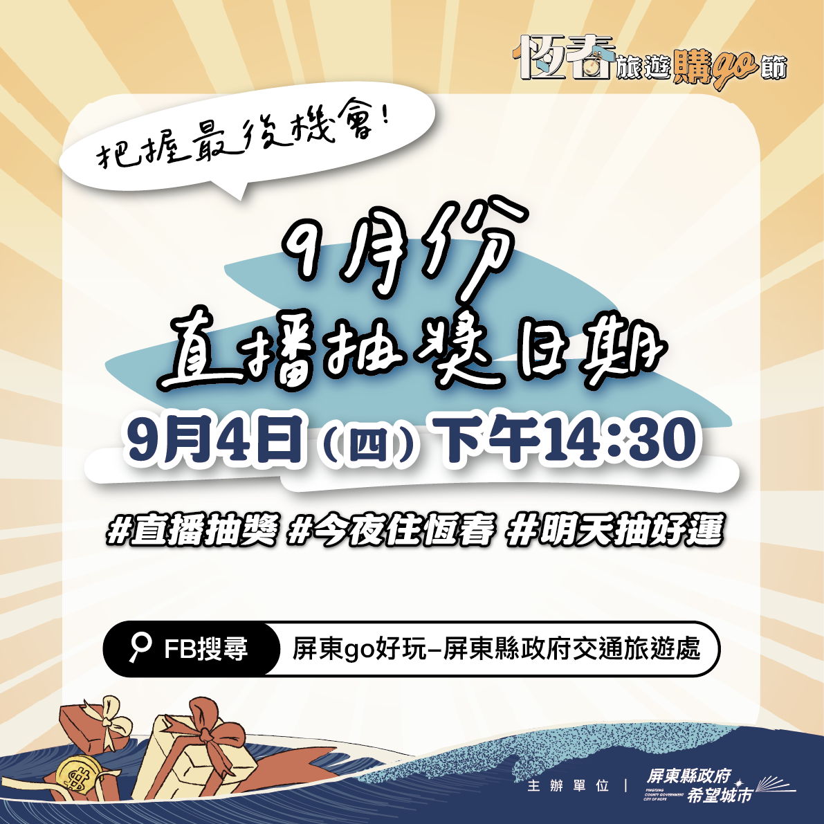 恆春旅遊購Go節,9月份直播抽獎 日期公告